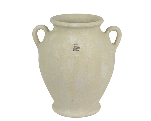 Anfora crema a due manici Ø25cm, altezza 30cm. Contenitore in terracotta ideale per decorazioni floreali e centrotavola naturali.