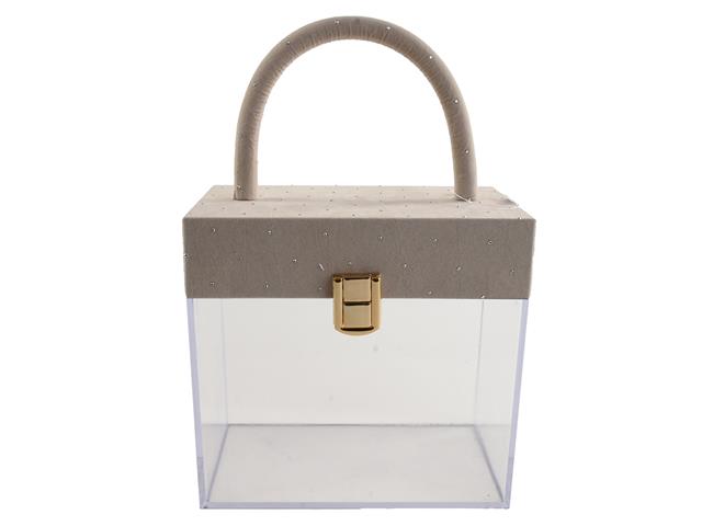 BAULETTO PLEXIGLASS C/MANICO VELLUTO E STRASS 17X10,3 H16CM CREMA DS4872902