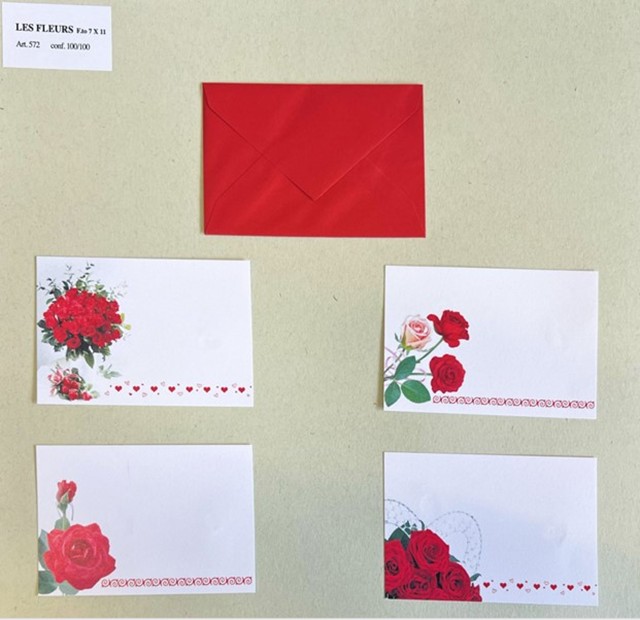BIGLIETTO+BUSTA ROSE 7X11CM 100+100PZ MODELLI E COLORI ASSORTITI 572