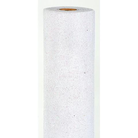 Bobina rete S. Moritz 72x9m bianco glitter: rotolo resistente, ideale per bouquet, packaging e decorazioni floreali.