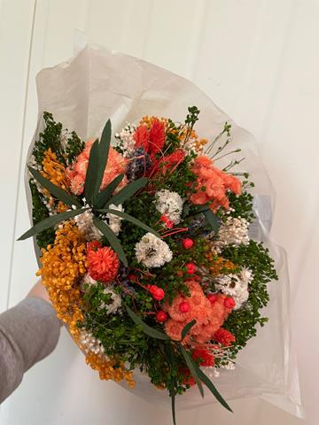 Nel Fantasy bouquet, i fiori essiccati sono combinati per creare volume e leggerezza: piccole spighe, rosette e spruzzi di tonalità diverse si intrecciano con rametti verdi per un effetto naturale ma curato. Questo bouquet fiori essiccati è pronto all’uso e può essere completato con un contenitore flat o una scatola decorativa per un effetto ancora più ricercato, a seconda del vostro stile.