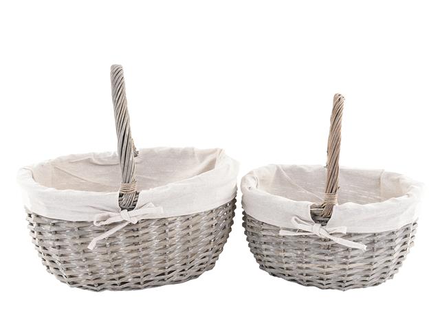 CESTO VIMINI OVALE C/MANICO E TESSUTO 2PZ 37X30X17 H35CM - 30X24X15 H30CM GRIGIO DS47116