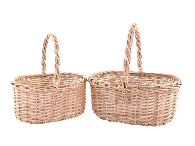 CESTO VIMINI OVALE C/MANICO SET 2PZ 26X24X16 H33CM - 26X19X14 H28CM NATURALE DS47113