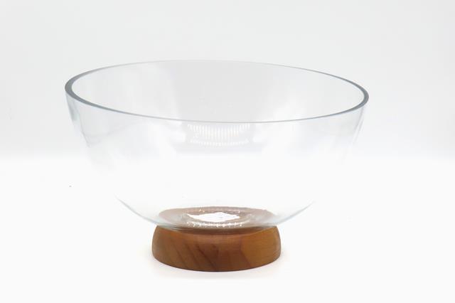 CIOTOLA VETRO C/BASE LEGNO NATURALE D26,5 H15,3CM TRASPARENTE 25203502