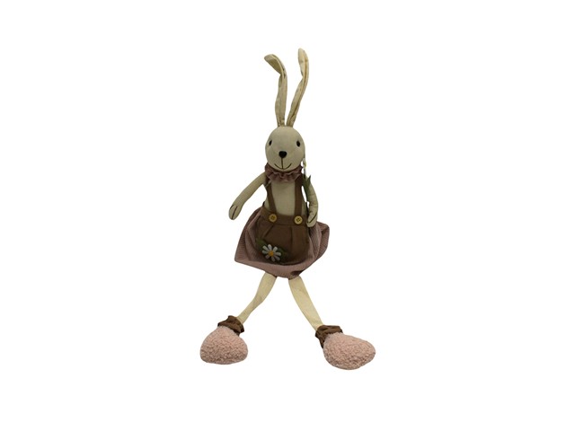 Coniglietta in tessuto seduta con vestito rosa/marrone, alta 54 cm. Decorazione d'arredo tenera per casa e giardino.