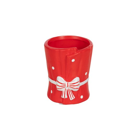 Coprivaso ceramica rossa con fiocco bianco e pois, contenitore elegante per fiori, bomboniere e allestimenti floreali.