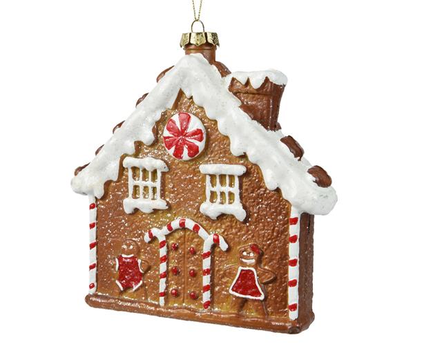 Questo ornamento in marrone richiama l’aspetto rustico della casetta di gingerbread: superfici leggermente strutturate, bordi ricoperti di “glassa” bianca, finestrelle con dettagli e una porta accattivante. Le finiture nelle tonalità rosse e bianco-ghiaccio donano un tocco festivo e accogliente, perfetto per creare un’atmosfera calda e invitante in casa o in giardino.