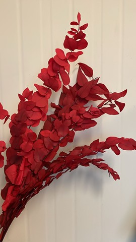 Eucalipto Stuartiana stabilizzato in tonalità rosso intenso, lungo circa 80 cm e dal peso di circa 150 grammi, rappresenta una soluzione raffinata per creare composizioni floreali conserve e ambientazioni durature. Il eucalipto stabilizzato, conosciuto anche come Eucalyptus Stuartiana, offre una texture vellutata e una colorazione rosso brillante che aggiunge profondità e modernità a bouquet, centrotavola e allestimenti in stile rustico-chic.