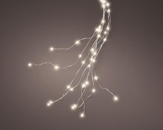 Fascio microLED 16 fili, 210 cm, cavo argento, luce bianco caldo IP44. Perfetto per interno/esterno e composizioni floreali.