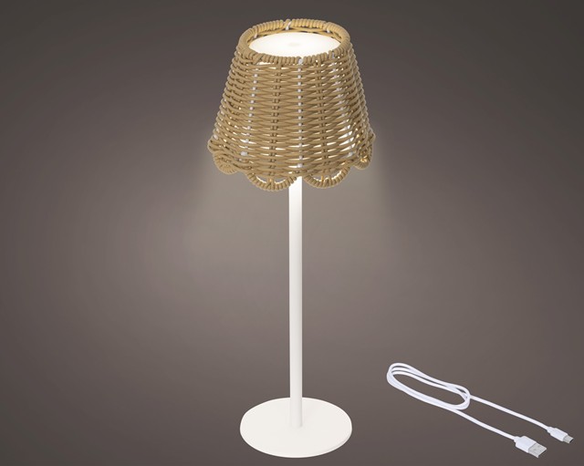 LAMPADA LED DA TAVOLO C/VIMINI LUCE BIANCA D12,5 H39CM (RICARICABILE C/USB) NATURALE 892317
