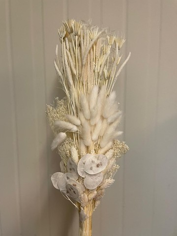 Mazzo verticale essiccato bianco 65/70 cm, 130 g. Elegante tocco naturale per decorazioni; cura semplice e ideale per bouquet d'interno.
