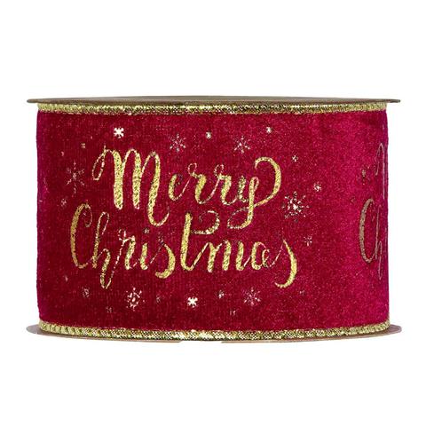 Nastro tessuto Merry Xmas 6cmx10m Rosso - 5007