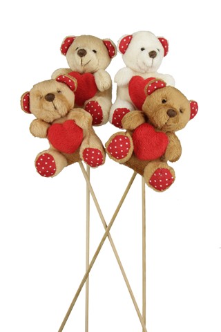 PICK ORSETTO C/CUORE D8 H30,6CM 4PZ COLORI ASSORTITI 26053502