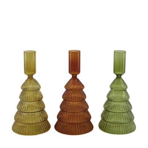Portacandele vetro "Albero" D8,5CM H17CM verde assortito è una choice raffinata per chi ama creare atmosfere magiche in casa o all’aperto. Questo portacandele in vetro presenta una forma a albero, con una siluette che richiama la natura e regala una luce calda e suggestiva. Nell’immagine è possibile apprezzare la versione verde assortita, disponibile anche in tonalità giallo/ambra e ambra/bronzo, offrendo un effetto cromatico elegante e versatile per ogni stile di arredamento o bouquet.