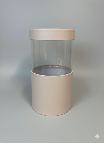 Scatola Window D7xH16 cm in bianco antico. Contenitore, box o portaconfetti in cartone per bouquet e regali floreali.