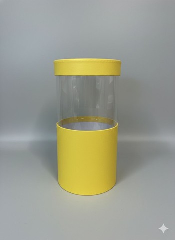 Scatola WINDOW gialla D7 H16cm, contenitore elegante per bouquet e regali floreali. Scopri box/portaconfetti in cartone, resistente e versat