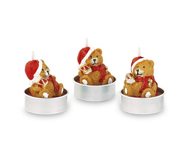 TEALIGHT ORSETTO C/CAPPELLO è un piccolo romanticismo natalizio che trasforma qualsiasi ambiente in un tocco di calda eleganza. Presentato in contenitore metallico o scatola metallica, questo set comprende 6 pezzi di candeline a tea light con dolci orsacchiotti vestiti a festa e cappellino, perfetti per creare luci soffuse e centrotavola accoglienti.